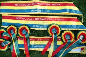 Becky had five rides over the weekend, first one on Julie Lockey’s and The Parents’ super five year old ‘Carinsio’ aka Jack Jack. He won his class in fine style, looking a million dollars and earning some very positive comments from International judge Trond Asmyr. The divine ‘Salsa’ then took the top spot in Fridays PSG, showing a continuing positive trend in his education – there are still some moments where he gets a bit tight, but others where his improving suppleness and elasticity really shine through. Julie Lockey’s beautiful and colossal Fursten Hit (all 18.2 of him) produced a good test, showing improved strength since his last outing in August 11, but still with more to come. Becky started early on Saturday morning with two rides in the four year old class, Julie’s stunning stallion ‘Deluxe’ and Nicki Moxon’s lovely moving ‘Renoir’. It was a hotly contested competition, but both the horses did really well finishing 4th and 5th. Josie Gyllensvard had a very exciting time when she got to ride Deluxe for Julie in the ride off – it was quite something with 10 four year olds cantering around the arena together!!! Thankfully most of them were so pooped by this point there were no calamities!
